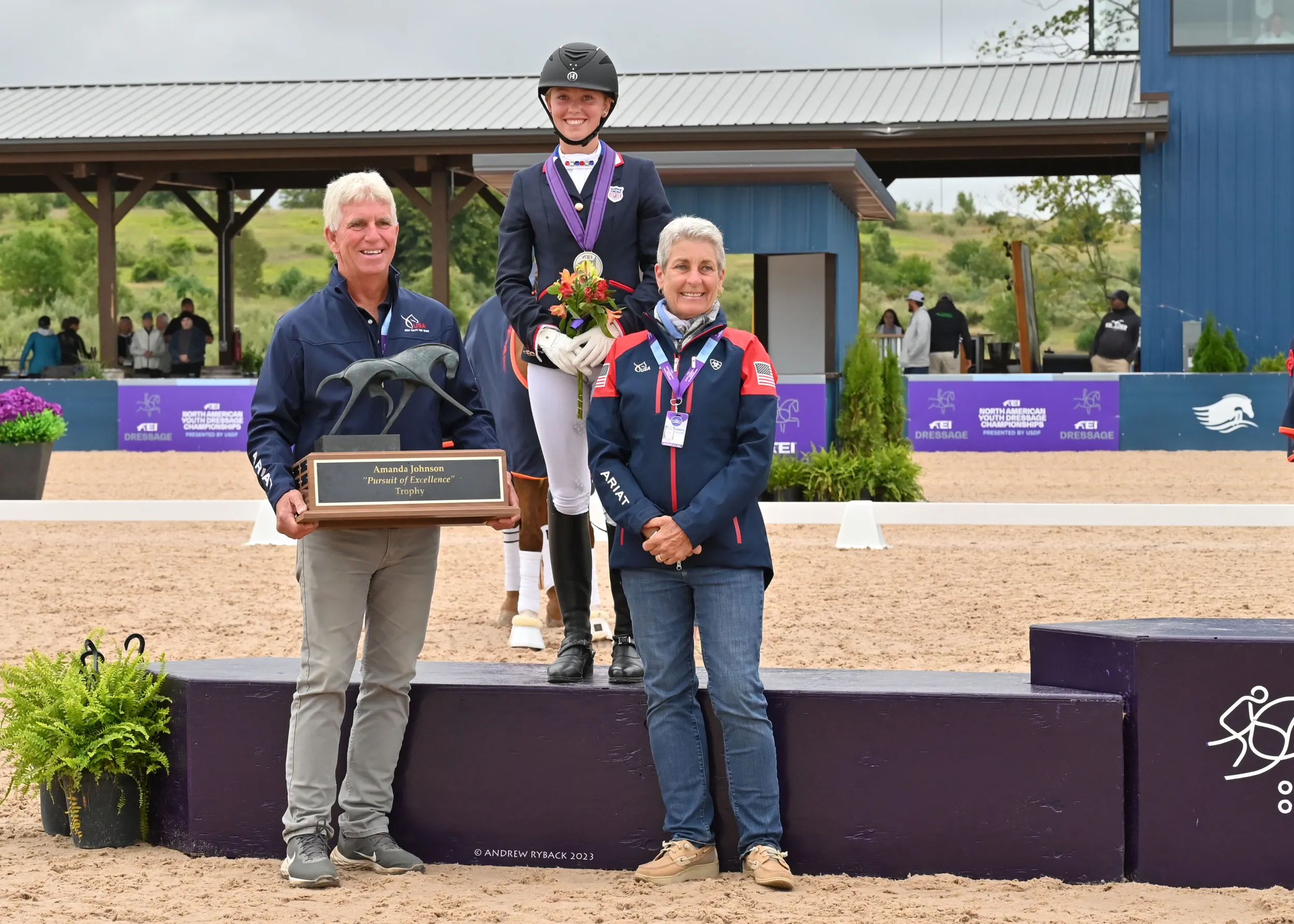 The Amanda Johnson "Pursuit of Excellence" award embodies the profound impact that Amanda Johnson had on the sport of dressage at a young age. Having been involved with USDF for over ten years, as a member of multiple committees and councils and as a participant in many youth programs, she was the inspiration behind the push to create the original Brentina Cup. Amanda was also an inspiration to her students, many of whom she coached to regional championships from Training Level through FEI, and some of whom went on to earn their USDF medals. Amanda, with her infectious smile and laughter, carried on the tradition of encouraging her students to seek knowledge, work hard, and pay it forward.